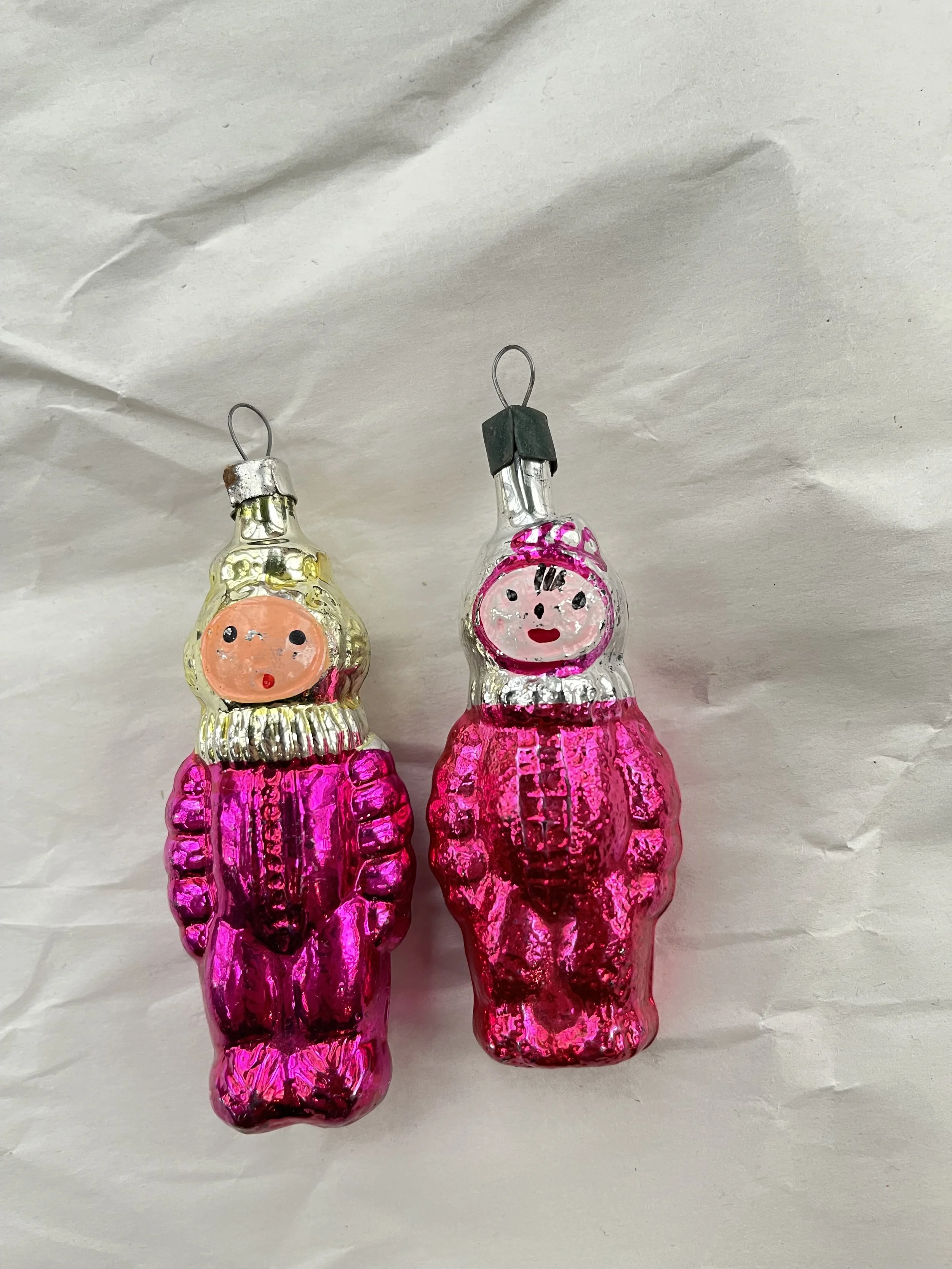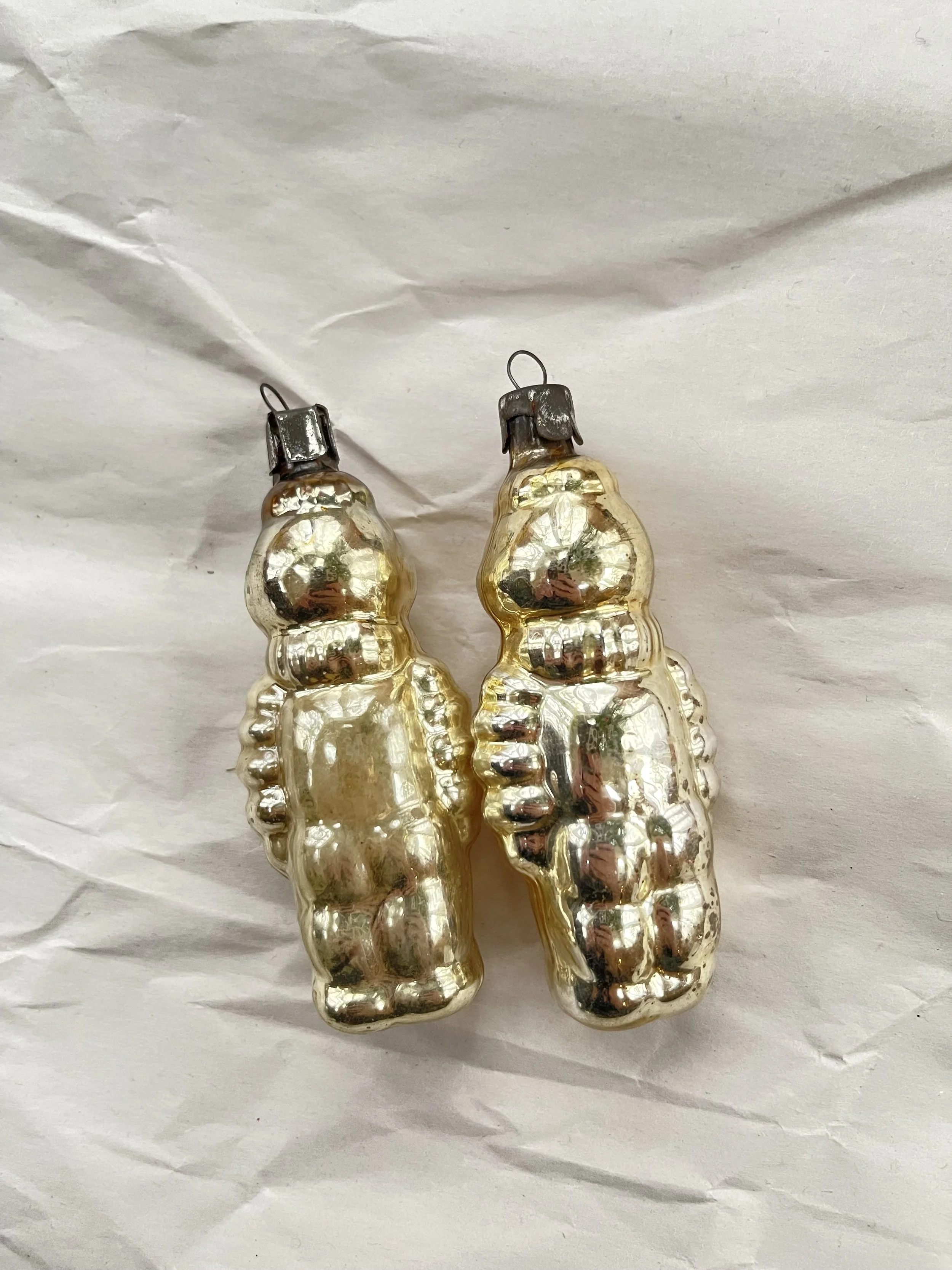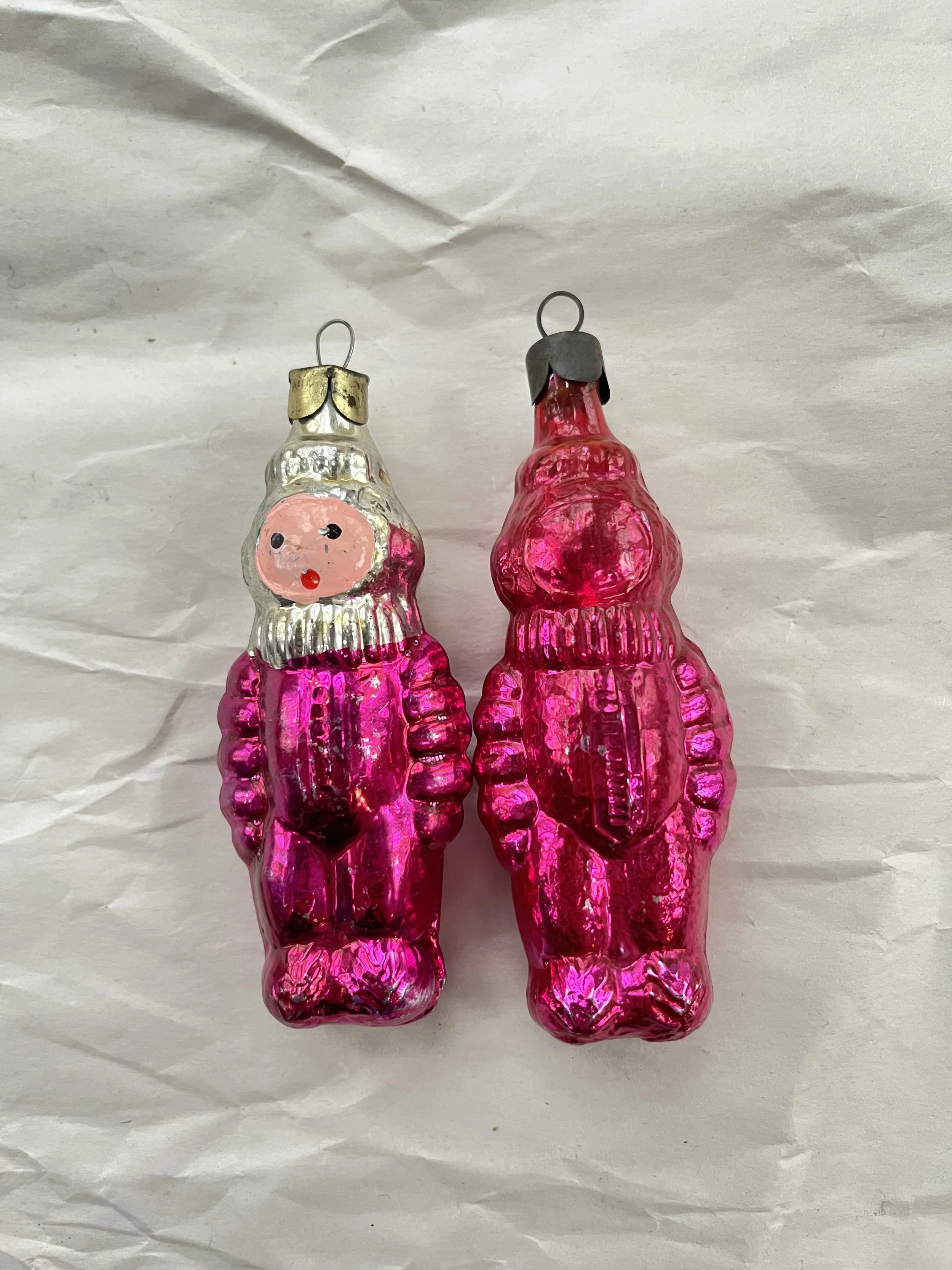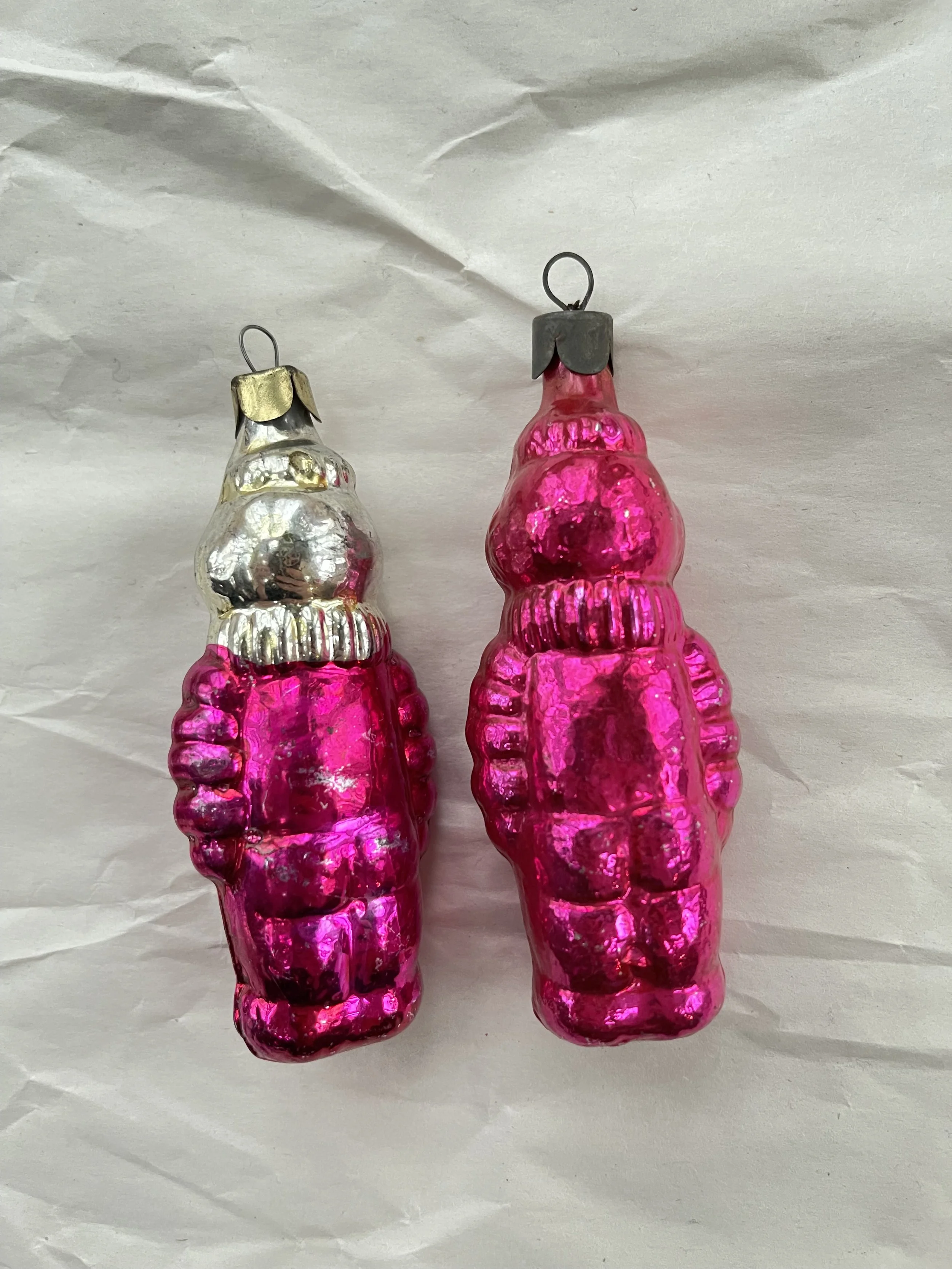 A striking set of ten vintage USSR ornaments in shimmering silver and aqua tones. Age wear to lacquer and caps but no cracks noted; they retain excellent color and display beautifully. A lovely set for collectors or anyone decorating with icy winter tones.
